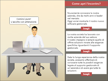 Demo di scenario-based e-learning su tecniche di vendita